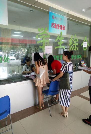 图为公寓中心管理员办理退寝手续