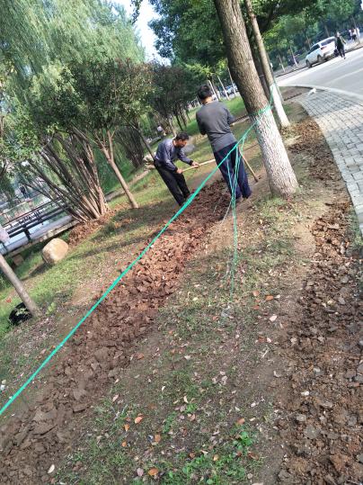 20日上午,后勤物业校园环境维护中心绿化人员乘着好天气早早地就开始翻整土地。此次土地翻整的范围主要集中在静思湖一带。