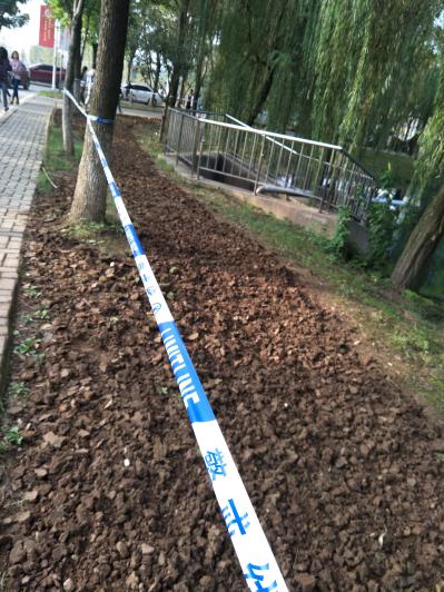 播种成功后,为防止师生误踩,我们还在现场拉起了警戒线。