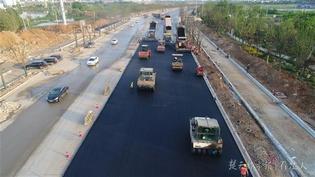 项目经理李春言介绍,通过此次沥青试验段摊铺,项目及时总结施工经验,在保证质量的前提下,五月底完成全线机动车道底、中层沥青摊铺,实现六月竣工通车的目标,献礼军运会。