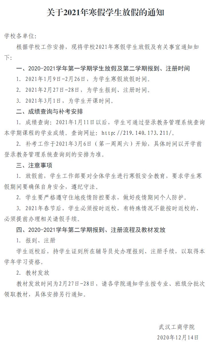 关于2021年寒假学生放假的通知