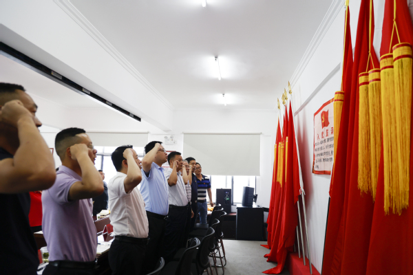图为与会同志重温入党誓词 摄影:周逸文