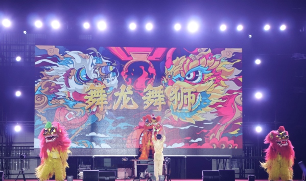 龙腾狮舞,锣鼓喧天,伴随着铿锵有力的音乐,晚会在精英龙狮社热闹喜庆的舞龙舞狮表演中拉开帷幕。随后,由大学生艺术团带来的器乐演奏《权倾天下》、舞蹈《舞动青春》《花间意》、歌曲《飞云之下》《New boy》《勇往直前》,现代音乐表演协会带来的歌曲《如愿》,艺术与设计学院带来的古典舞《雨涧春行图》、流行舞《Paris》,校团委带来的诗朗诵《致少年工商》等12个节目,以舞蹈、朗诵、歌曲等多种表演形式,为全体新生带来一场精彩纷呈的青春盛宴。