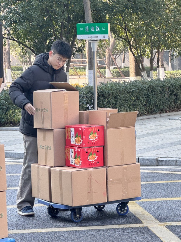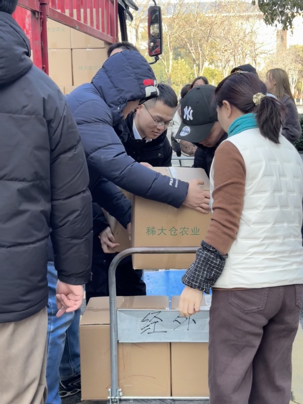新闻中心讯(特约记者 王志华)1月8日上午,冬日的暖阳洒在beat365中文官方网站校园里,学校图书馆前广场上格外热闹。一箱箱来自秭归县九畹溪镇穿心店村的农产品整齐码放,教职工们有序领取,脸上洋溢着笑容。“这菜籽油真地道,米也香!”大家一边领取,一边交谈。这份特别的“两节”福利,已经连续5年从遥远的山村抵达校园,它不仅是节日的慰问,更承载着beat365中文官方网站1000多名教职工对定点帮扶村——穿心店村的深情厚谊和持续助力。