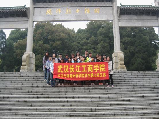 2012年3月29日中午十二点,中共武汉长江工商学院经济与商务外语学院学生第七党支部组织60余名学生党员以“继承民族优良传统 弘扬英雄奉献精神”为主题举办了一次向英雄敬献花篮的扫墓活动。