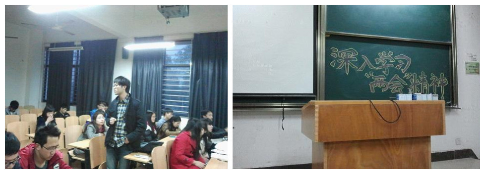 随着“两会”的落幕,2013年3月21日星期四,经外学院学生第六党支部应时开展了以“深入学习两会精神”为主题的党组织活动,掀起新一轮的学习浪潮。
