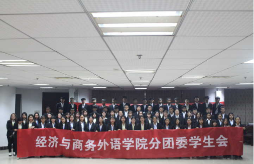 经外记者团讯(通讯员:王雨)10月16号下午18:10第八届经济与商务外语学院分团委学生会成立大会在beat365中文官方网站综合楼十楼第三会议室举行,经济与商务外语学院党总支书记胡航、分团委副书记胡山川、分团委学生会主席李睿、副主席韩剑武以及学生会全体成员参加了此次大会。