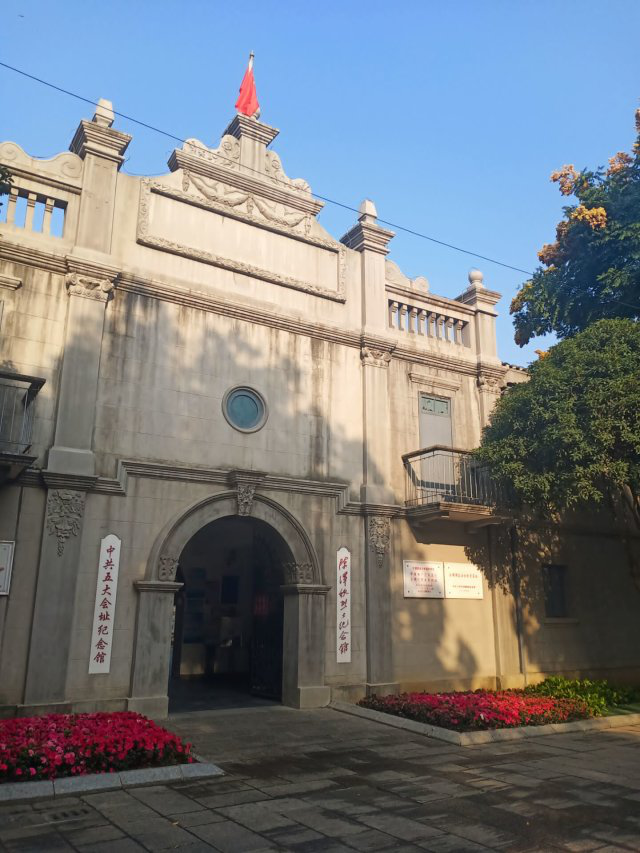各成员及预备党员陆续到达中国共产党第五次全国代表大会纪念馆门口,由组织部部长张晨组织大家在门口集合并合影,然后再让大家自行进入馆内参观并嘱咐大家在馆内不要喧哗,可以在门口领取会址的简介书,仔细了解会址的历史内容。