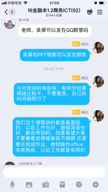 刚开始还很是焦虑的,太多的谣言以及线上平台时常爆出的不稳定、超负荷,让老师们像热锅上的蚂蚁,担心临阵会有很多问题,我与其他老师一样,开始试用各种平台、群内每天进行交流。随着老师们的经验传递,慢慢的有了一些思路。在大家都要线上教学的情况下,长时间的直播肯定不现实,找合适的慕课资源,并提前录播自己的课件、加互动答疑的方式比较理想。院长张晓骏不时推送的资源和方法,也推荐了很多的线上课程,确定好方案以后心里就踏实很多再好的平台也只是给我们的教学锦上添花,其实最核心的,还是我们如何去和学生互动,让学生通过线上学习也能够很好的掌握课堂学习的内容。