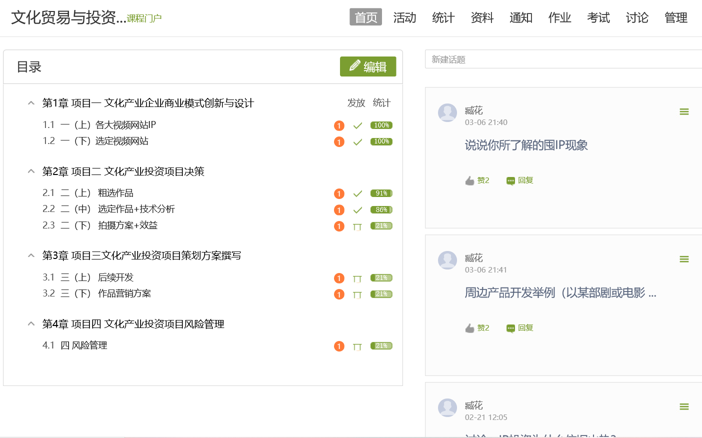第一,关于学习通平台的使用技巧。目前,我常用到的技巧有签到、章节建设、讨论、作业等功能。在以后的线下教学中,应该灵活应用投票、测试等功能,以提高教学的有效性和互动性。特别是一些应用的细节问题,更应该在实践中掌握。另外,平台作为学习资源的重要载体,在线上教学的应用方式应该和线下教学不一样,这也需要后期再进行实践。