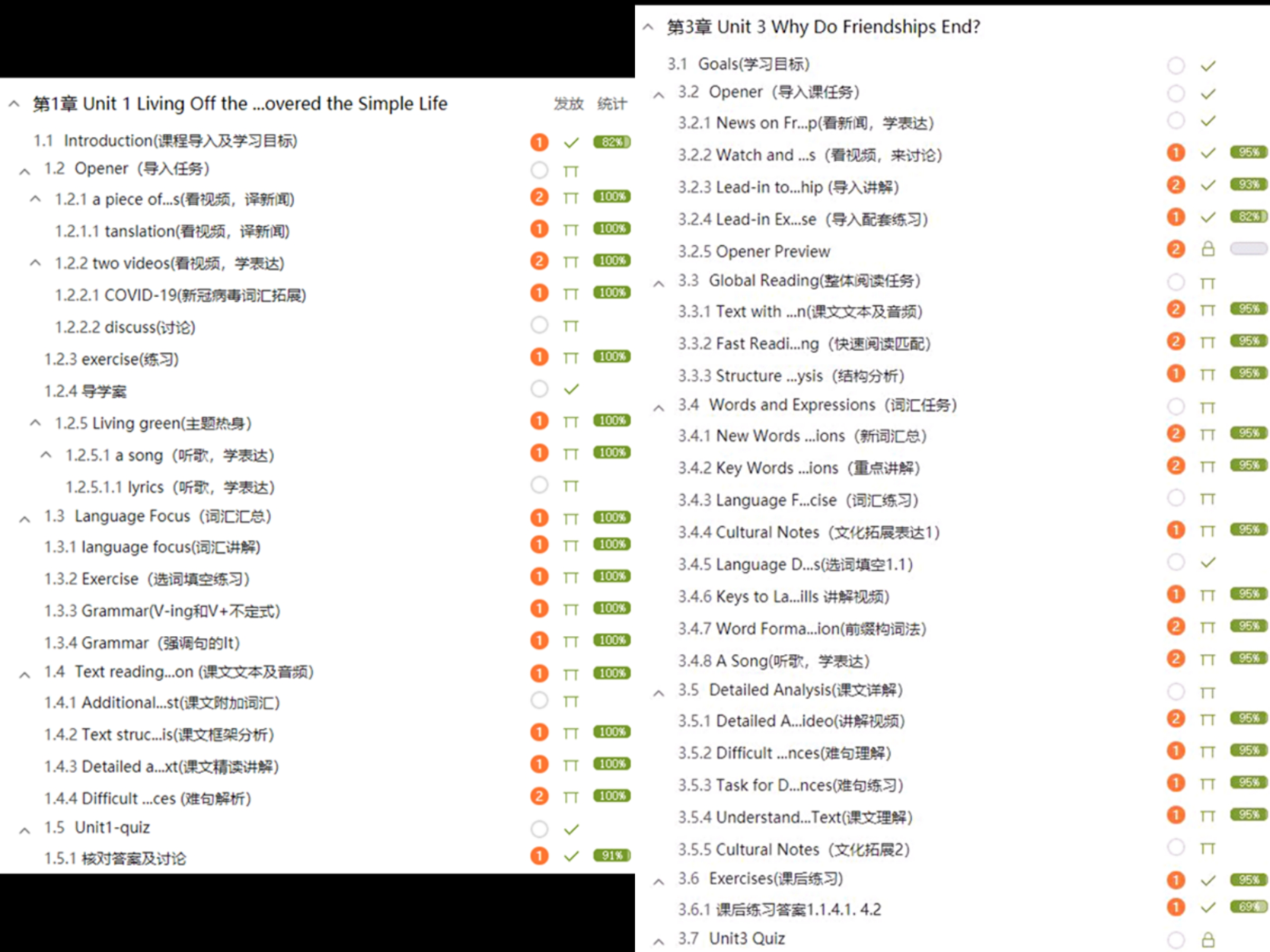 网课开课前的半个月最让人焦虑:第一次接触学习通平台,没有教材,技术不熟,线上课程对比线下课程几乎等同于推翻重构。教研室老师们分成团队,分担了几个单元的线上建课任务。非常感谢负责第一单元的夏金玲、武晶晶、朱燕老师,纲举目张,开创性地给老师们做出示范,我很受启发,并结合自己的备课内容和所带班级特点,在共享课件上进行丰富和重构。