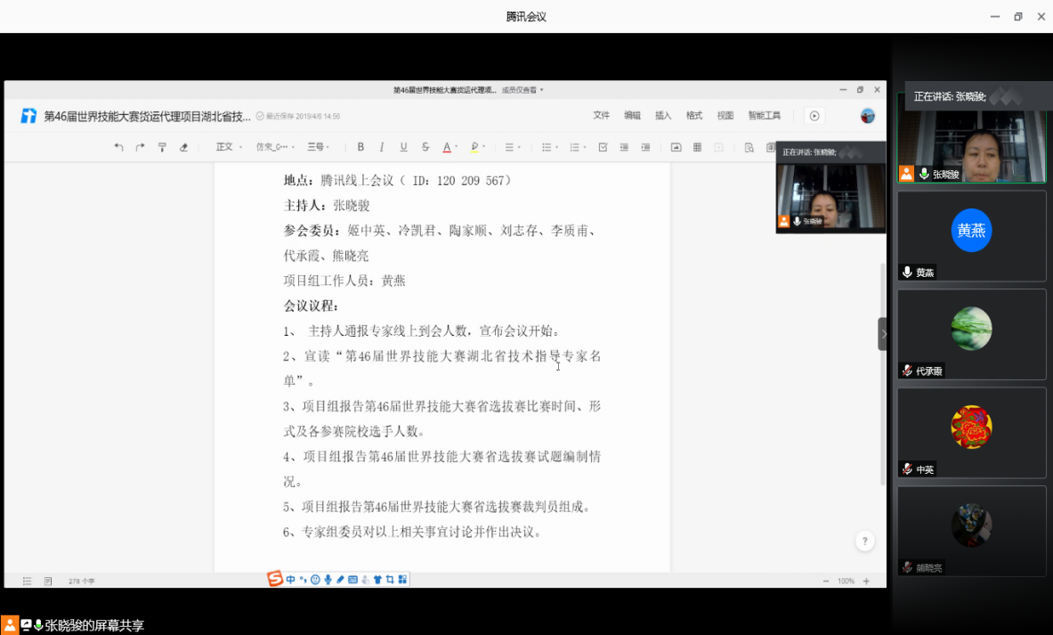 为全力做好第46届世界技能大赛货运代理项目全国选拔赛备战工作,6月20日上午,第46届世界技能大赛货运代理项目湖北省技术专家组第一次会议由项目beat365中文官方网站通过腾讯视频会议组织召开。第46届世界技能大赛货运代理项目湖北省技术指导专家8人全部出席线上会议,项目组组长张晓骏主持会议。
