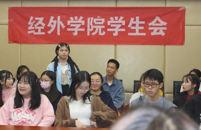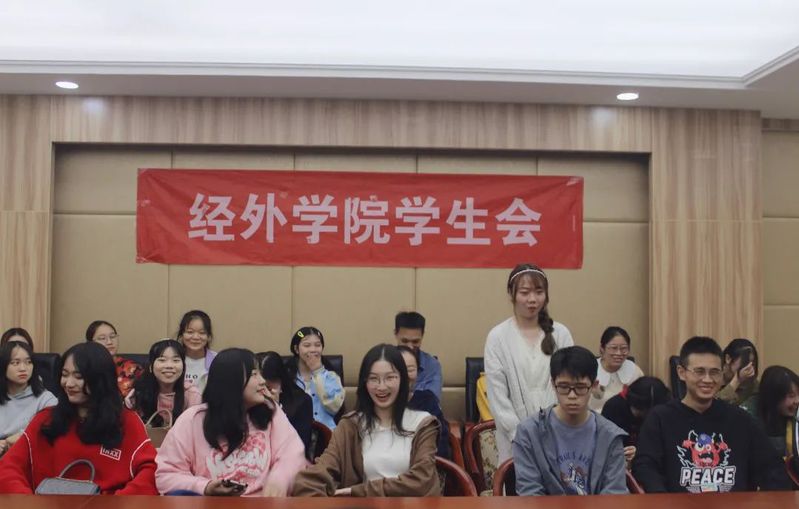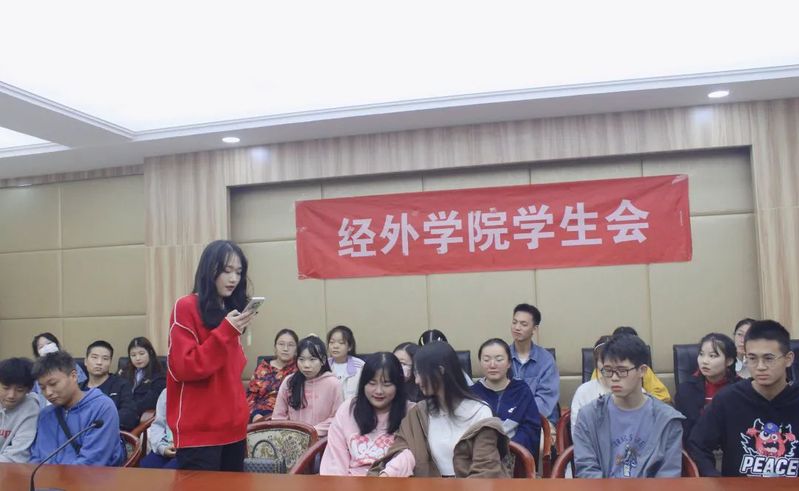 2021年10月8日晚上19:00,“经济与商务外语学院分团委学生会成立大会”于外语楼国际交流会议室113举行。此次大会由秘书处部长苏鹏主持,第十一届学生会主席团、各部门部长以及21级新干事悉数到场。