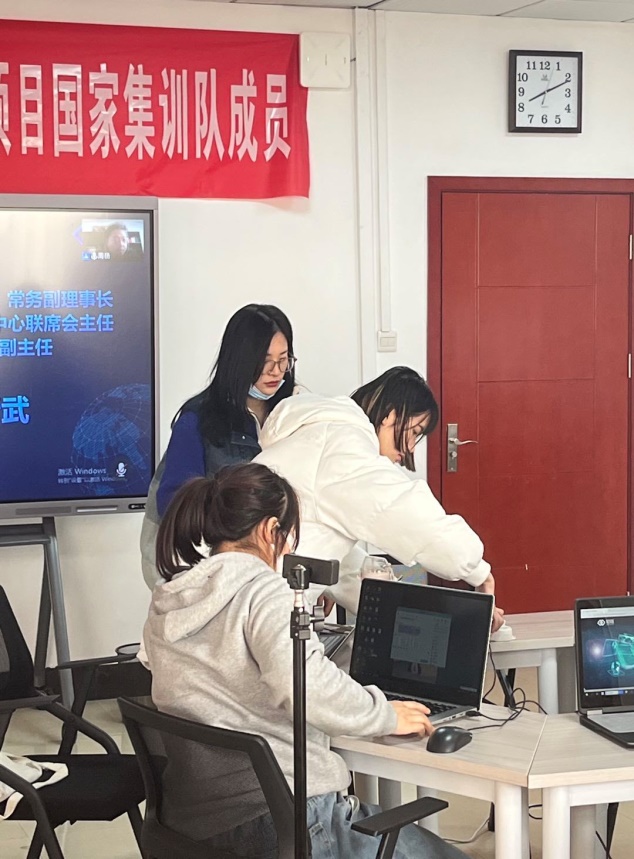 由于疫情原因,本次决赛为线上进行,决赛时每位参赛选手自备电脑并下载比赛要求的录屏软件。现场用四部手机作为录像设备,全场比赛腾讯会议进行实时视频监控。12月4日早上8点在综合楼904正式开始进行决赛开幕式,8位参赛选手和指导老师进行线上参与。9点整正式开始比赛,比赛分为三个板块,首先第一个板块每位参赛队员各自答题,计时40分钟。在这40分钟里,大家都全身心投入于比赛中,因为这个板块的基础知识答题可以很好的拉开与其他团队的差距。第二个板块模拟操作开始,两个队的每位成员被分配到不同的角色,这个板块为团队合作,既能考验团队的协作能力,又能考察大家的实践操作能力。80分钟的实践应用板块,两个组一直战斗到最后自动交卷的那一刻。第三个板块由于比赛通道系统的原因,比赛做题环节断断续续进行,中途暂停比赛一会。系统做题和提交速度缓慢,但这并未很大的影响到大家做题的情绪,大家都很沉着冷静,等待考试系统恢复正常。等待系统恢复后,8位参赛队员顺利完成本次比赛。