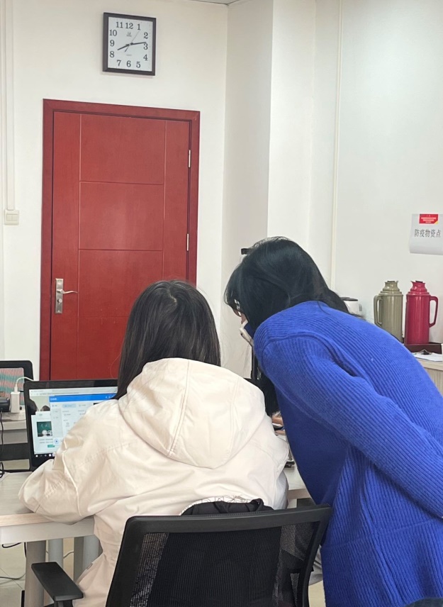 王亚男老师在进行赛前指导、帮助学生调整设备