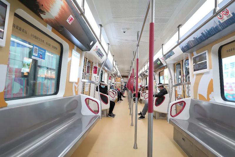 5号线的车头取消传统驾驶室,改成了敞亮的观景玻璃,乘客在车厢内可以直接观赏隧道内景,体验全速穿梭“时空隧道”的感觉。5号线还是一条“全能换乘线”,可与已通车的2、4、7、8号线换乘,连接了武汉目前所有经过长江的地铁线路。