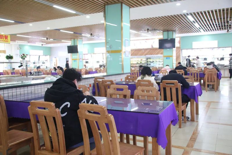 食堂里,大家有序取餐用餐,饭菜的香味儿,飘荡在空气中,这是熟悉的武工商味道,入口那一瞬间,心底的暖流就好像,久别回家吃到第一口饭菜的感觉,校园里的商业网点也陆续开放了