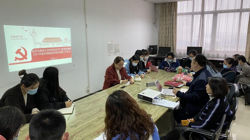 3月18日,经济与商务外语学院党总支书记胡航在学院1-904会议室召开经济与商务外语学院党史学习教育部署暨2021年度学院基层党组织党建工作会议,对经外学院党史学习教育实施方案工作进行了安排。2021年是中国共产党成立一百周年,中国共产党百年来伟大奋斗的历程和习近平总书记新时代中国特色社会主义思想,经济与商务外语学院的全体师生应对其进行全年学习,党员师生应以积极学习党史,推进学院党史学习教育,让党史学习成为教育常态化。