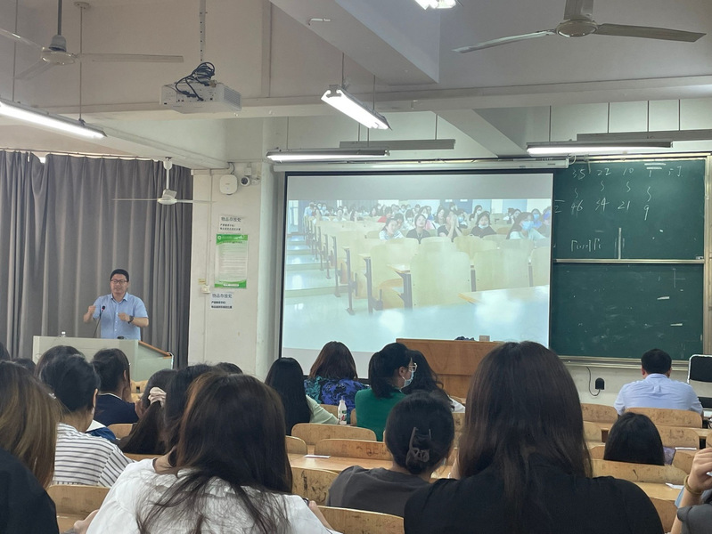 外语实践指导老师王志华老师宣布2021级英语专业实习讲座正式开始。他热情的向同学们介绍了出席此次讲座的传神公司的闫副总裁和刘经理,并强调了此次讲座的重要性。本次讲座的目的是鼓励学生们理论与实践相结合,在社会实践中接触与相关专业相符合的实际工作,让同学们运用所学专业知识进行实践,提高自身能力。