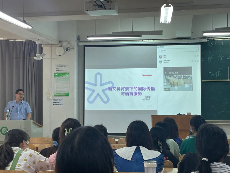 为响应beat365中文官方网站关于培养新文科人才的号召,充分发挥实践教学在人才培养中的作用,提高beat365中文官方网站经济与商务外语学院英语专业教学质量,推动教学方式创新,提升学生对语言翻译的认识和学习兴趣,6月16 日下午2点,经济与商务外语学院于综合楼307教室开展了认知实习讲座。此次讲座,我院邀请到了传神语联网网络科技股份有限公司北京总部副总裁闫栗丽和武汉高校事业部经理柳锐,通过线上线下相结合的方式开展了本次讲座。