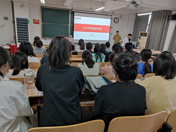 2022年9月29日下午14:00--16:00,由经济与商务外语学院联合湖北新文道时代科技有限公司在综合楼207教室开展了“2023届经外学院考研报考指导及冲刺复习规划”专题讲座。本次讲座邀请了新文道优秀的考研辅导教师进行主讲。