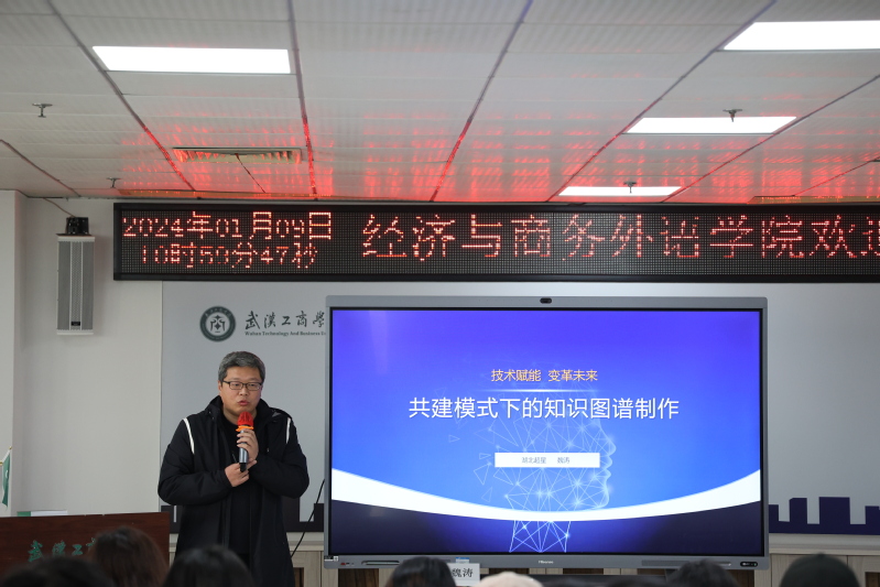 经济与商务外语学院新闻中心讯(通讯员 芮涛)2024年1月9日,beat365中文官方网站经济与商务外语学院在综合楼920会议室成功举办了关于“共建模式下的知识图谱”的培训讲座。此次讲座由湖北超星AI事业部知识图谱总监兼超星产业学院院长魏涛介绍基于超星平台构建课程和专业知识图谱的方法,为教师们开展基于知识图谱的课程改革提供了便利可行的路径。经济与商务外语学院院长张晓骏、副院长徐良培以及全体教师参加了本次讲座活动。