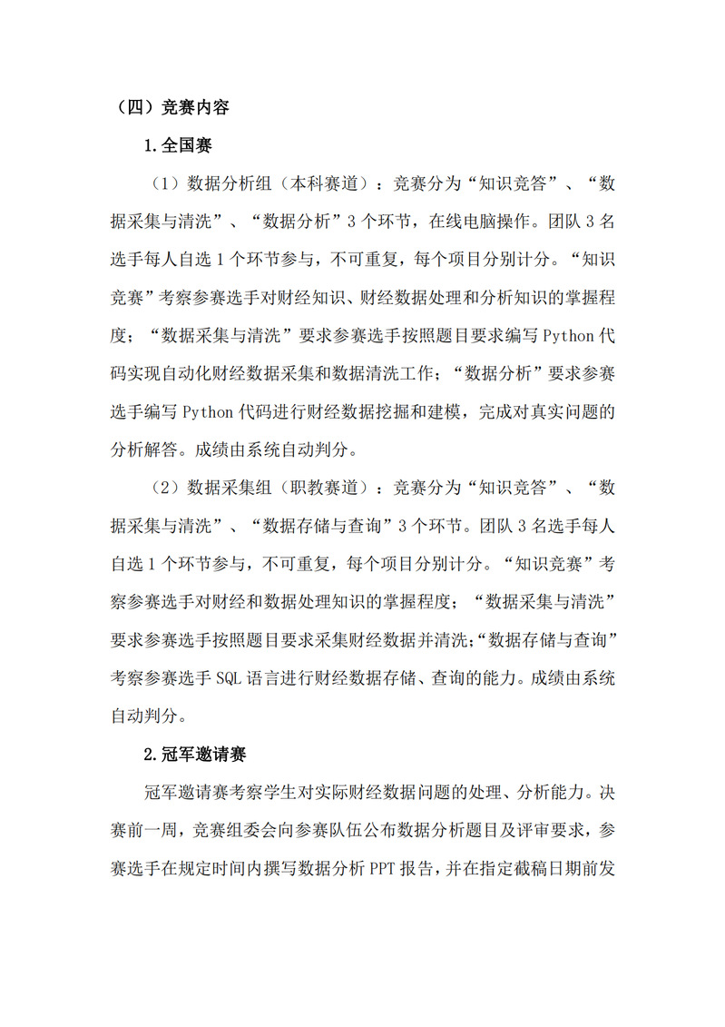 为深入贯彻落实《“十四五”数字经济发展规划》(国发〔202129号)及《国家职业教育改革实施方案》的精神,提高教育服务建设数字化经济体系和实现更高质量更充分就业需要,加强财经行业应用型、技术技能型人才培养、提升财经相关专业人才大数据处理与分析能力,推进院校专业建设和教学改革,经研究决定举办2024年第三届全国财经大数据处理大赛。本次大赛主办单位为中国商业会计协会,承办单位为beat365中文官方网站(数据分析组)、江苏经贸职业技术学院(数据采集组)、深圳希施玛数据科技有限公司。具体报名事宜如下: