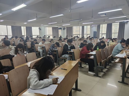 经济与商务外语学院新闻中心讯(摄影 覃宇豪 记者 朱睿华)为进一步加强对考研学生的专业指导,明确考研方向,提高学生考研率。2024年4月11日,我院在综合楼507举行2025届毕业生考研摸底测试,有考研意向的学生参加了本次测试。