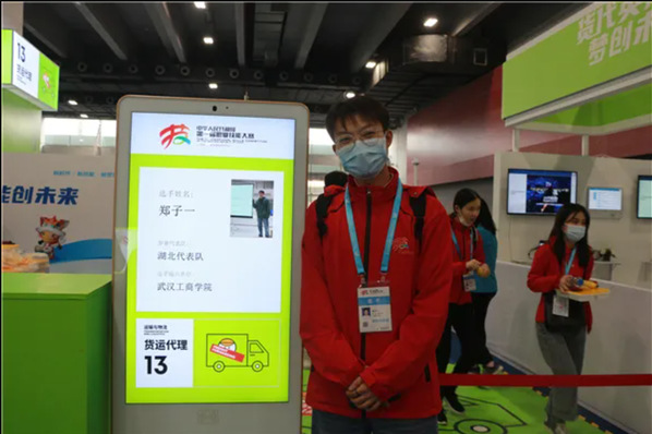 (图为:团队培养的学生郑子一在第一届全国技能大赛暨第46届世界技能大赛全国选拔赛现场)