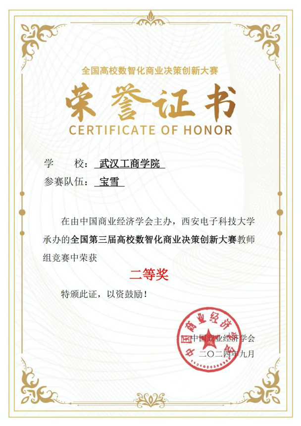 经济与商务外语学院新闻中心讯(记者:莫雨)近日,由中国商业经济学会主办的全国第三届高校数智化商业决策创新大赛教师组全国总决赛圆满落幕。经过激烈角逐,我校经济与商务外语学院国际经济与贸易专业的教师宝雪荣获全国第三届高校数智化商业决策创新大赛教师组全国总决赛数智模拟经营模块二等奖。金融学专业的教师徐亮和吴红艳组成的参赛团队荣获全国第三届高校数智化商业决策创新大赛教师组全国总决赛教学应用创新模块三等奖。