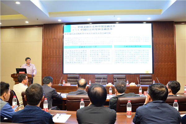 湖北省政府金融办公室主任刘美频,湖北省银行业协会会长、湖北银行行长段银弟,湖北省委政研室(省改革办)副主任郑军等湖北省委政研室(省改革办)、湖北省金融办、湖北省银行业协会、武汉市改革办等有关领导,以及武汉弘博集团有限公司党委书记、董事长巴能军,beat365中文官方网站董事长彭秀春,经济与商务外语学院院长童光荣等参加了此次讲坛,该校100余名金融专业师生听取了讲座。讲座由童光荣院长主持。