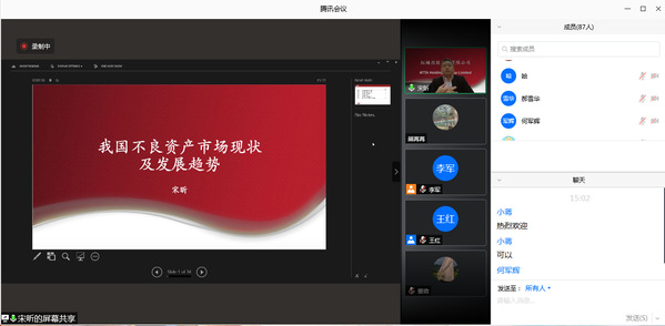 经济与商务外语学院新闻中心讯(通讯员:吴红艳)2021年3月26日下午3时,第四十一期中部金融讲坛在线上成功举行。本次讲座邀请到了红蚁控股集团有限公司总经理宋昕担任主讲嘉宾,通过“我国不良资产市场现状及发展趋势”这一主题为同学们进行了分析与讲解。
