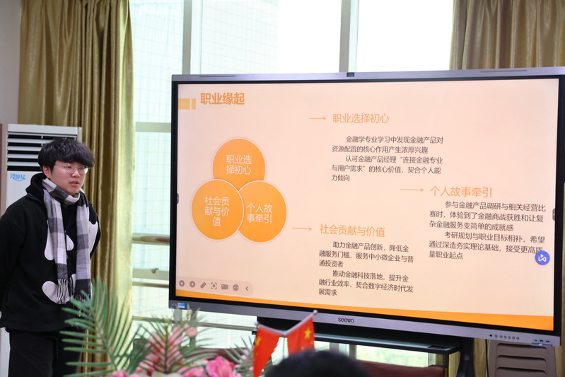在本次院赛中,各参赛选手从多维度展现了个人的职业规划与理想追求。有的选手希望将所学知识与基层需求相结合,投身乡村教育事业;有的选手立志深耕金融领域,成为兼具专业能力与国际视野的分析师;还有的选手计划利用技术创新服务社会,或在文化传播、国际交流等领域开拓新的职业路径。这些丰富多样的职业设想与坚定的理想信念,充分体现了我院学子理论与实践相结合、脚踏实地追求卓越的优良学风。