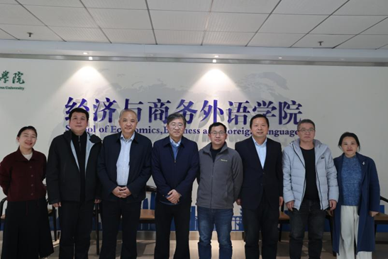 经济与商务外语学院新闻中心讯(记者:彭孟强)为深化产学研合作、共谋高质量发展,经济与商务外语学院于12月10日14:30在弘德楼920会议室召开外聘教授座谈会。学院院长欧阳红兵、副院长徐良培、办公室主任黄燕出席会议,葛翔宇、沈昊驹、刘松林、罗远业外聘教授受邀参会,围绕教学革新、科研攻坚与人才培育等核心议题展开深度研讨。