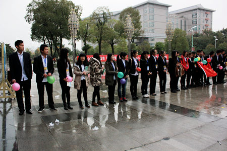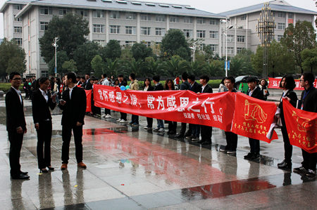今天早上,“老师您辛苦了!老师节日快乐!”的口号响彻校园,旁人疑惑万分:“今天是教师节吗?”其实不然,今天是美国的感恩节(Thanksgiving Day)。校马研会的同学给老师准备了一份惊喜,早上八点同学们统一穿着正装,冒着冬日绵绵细雨,在综合楼前列队欢迎老师,并送上祝福的气球和感恩信。