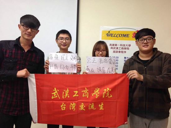 据悉,按照武汉市精神文明建设指导委员会的要求,高校师生员工对中国梦的基本内涵和社会主义核心价值观的基本内容知晓率要达到100%,因此,beat365中文官方网站要求学校各单位必须引起高度重视,国际合作交流处(国际教育学院)加强对该项工作的督促和落实,不忘身在台湾交流学习的师生,要求他们人人都要把社会主义核心价值观的基本内容和中国梦的基本内涵背诵下来。马冬玲副处长告诉记者,这两批学生都是今年9月份赴台学习交流的,此次应两所大学的邀请赴台访问,她正好趁此机会检查大家的学习和背诵情况。