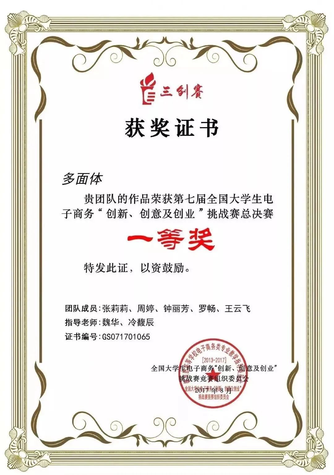 ▲我校学生斩获全国大学生电子商务“创新、创意及创业”挑战赛一等奖