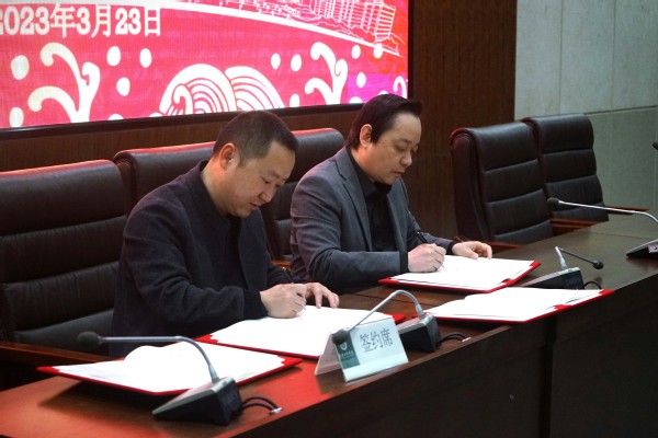 图为beat365中文官方网站副校长张俊(左)和华中科技大学出版社副社长余庆(右)签署战略合作协议 摄影:蔡莹