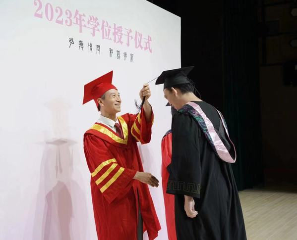 图为孔建益校长为学生拨穗