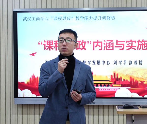 刘学莘副教授围绕目标理念的确立、内容体系的构建和思政教育素材融入三方面,从“理念先行、认知升级、有的放矢、疑点解析、协同育人”五个内容做了主题为《课程思政“内涵与实施”》的分享。