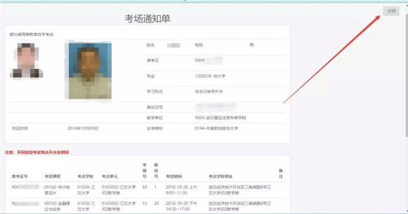 第三步:点击【打印考场通知单】,进入打印界面,点击右上角【打印】