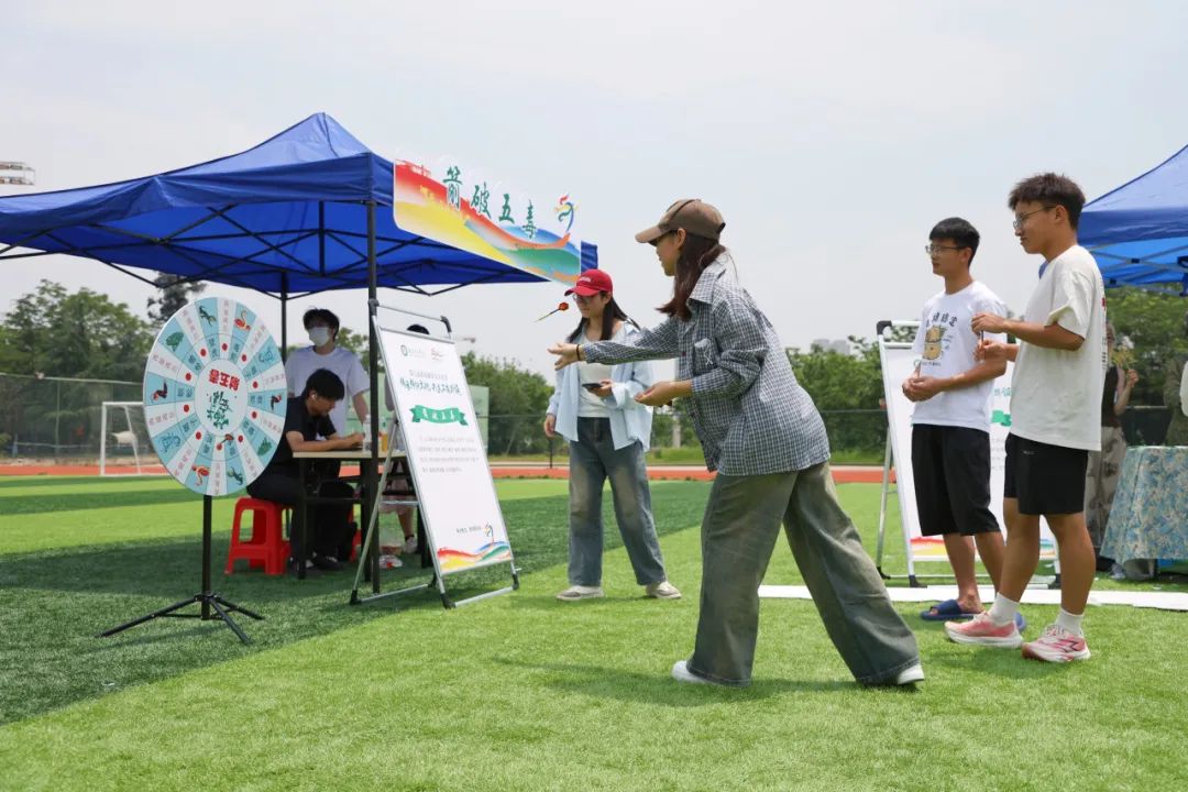 活动还吸引了学校不少留学生的积极参与,来自尼泊尔的留学生尼锐与来自伊拉克的海德、义博3人一起组团参加了旱地龙舟比赛,表示既新奇又充满挑战。尼锐说道:“这比普通赛跑有趣多了,我在尼泊尔从没有参加过这样的活动。”海德也表示这是一次特别开心的体验。“提着龙舟跑比想象中累,虽然不用下水,但团队配合很重要,我们中途差点摔倒。”他们3人还依次前往各个活动展位前“打卡”,感受端午节的独特魅力和中华传统文化的博大精深。