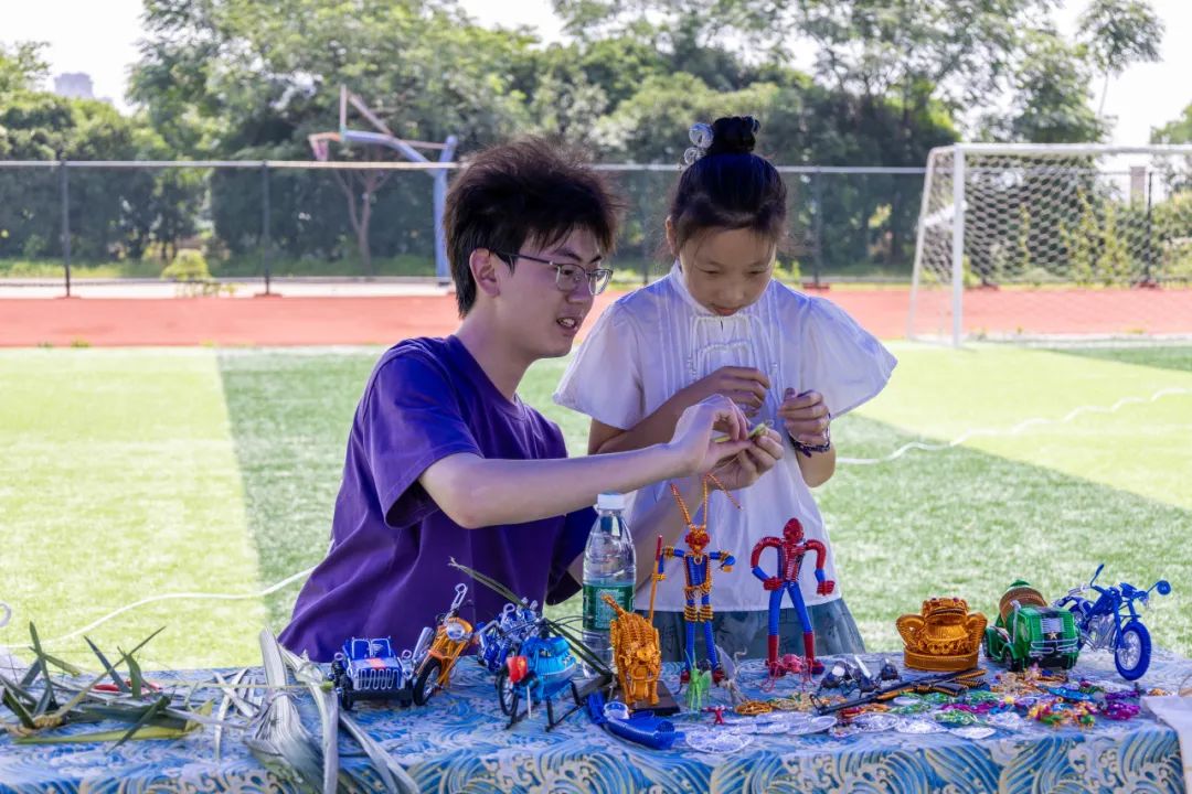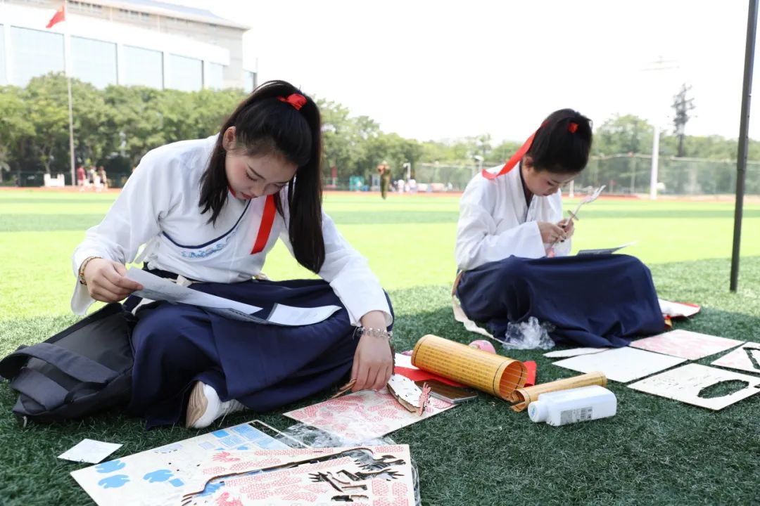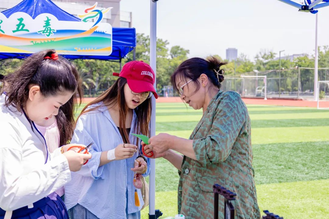 开幕式结束后,非遗主题活动、旱地龙舟竞赛等文化活动,以及武术、舞龙舞狮、国风舞、汉服走秀等表演相继在学校田径场上火热开展,吸引了诸多市民和师生围观和参加。李瑞刚、喻政森、韩恒涛、孟秋会4位非遗传承人进校,为大家科普与展示了糖画、草编、面人、剪纸等传统民间手工艺术,广大市民和师生还在现场体验了射五毒、彩绘鸭蛋、漆扇、蹴鞠、皮影戏、太极拳、竹编、象棋、投壶、制作香囊与五彩绳、组装龙舟模型、写对联等丰富多彩的传统文化,沉浸式提前共度端午佳节。