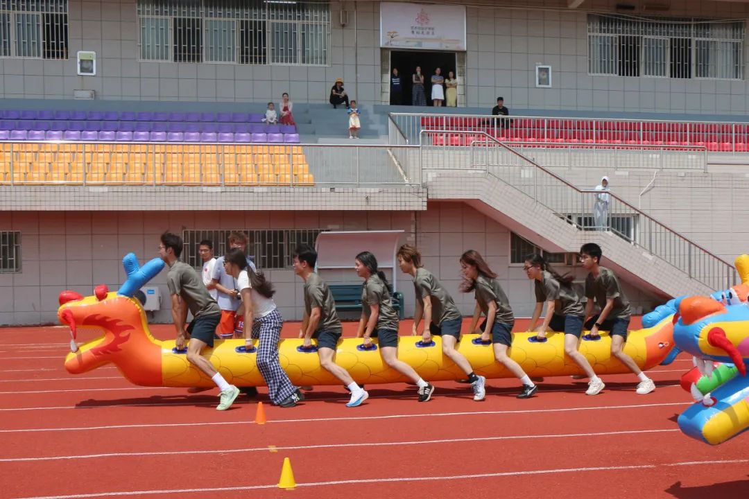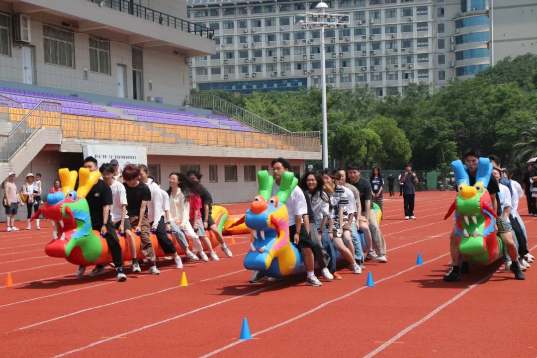 在旱地龙舟竞赛现场,来自各二级学院以及国旗队的12支代表队欢乐竞技、热闹非凡,最终国旗队斩获一等奖,环境与生物工程学院、计算机与自动化学院荣获二等奖,物流学院、经济与商务外语学院、文法学院获得三等奖。
