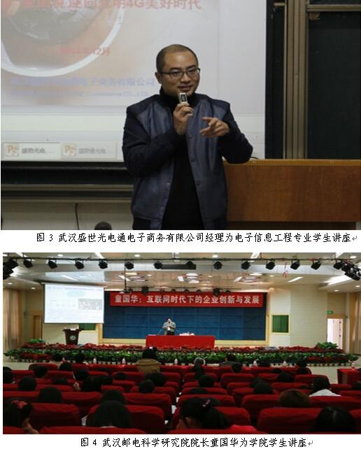 教师的讲课有其系统性、科学性的优势,但是同时也存在与社会环境、最新的人才需求相对脱节的弊端,为了弥补这个劣势,信息工程学院每2个月左右邀请合作紧密的企业的知名专家进校为各个专业的学生进行专业知识发展、学科前沿介绍的讲座,通过讲座,让学生了解当今社会对相关专业人才需求的现状,了解所在专业知识发展的趋势,为后期学生的学习提供了很好的思路。
