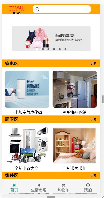 轮播图 家用电器板块 厨房卫浴版块 家居家装版块