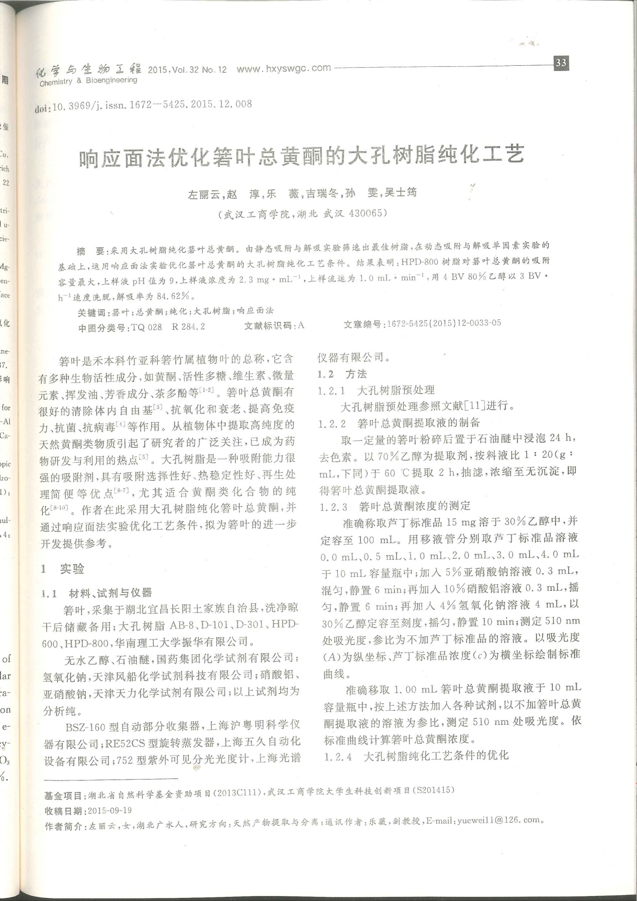 响应面法优化箬叶总黄酮的大孔树脂纯化工艺