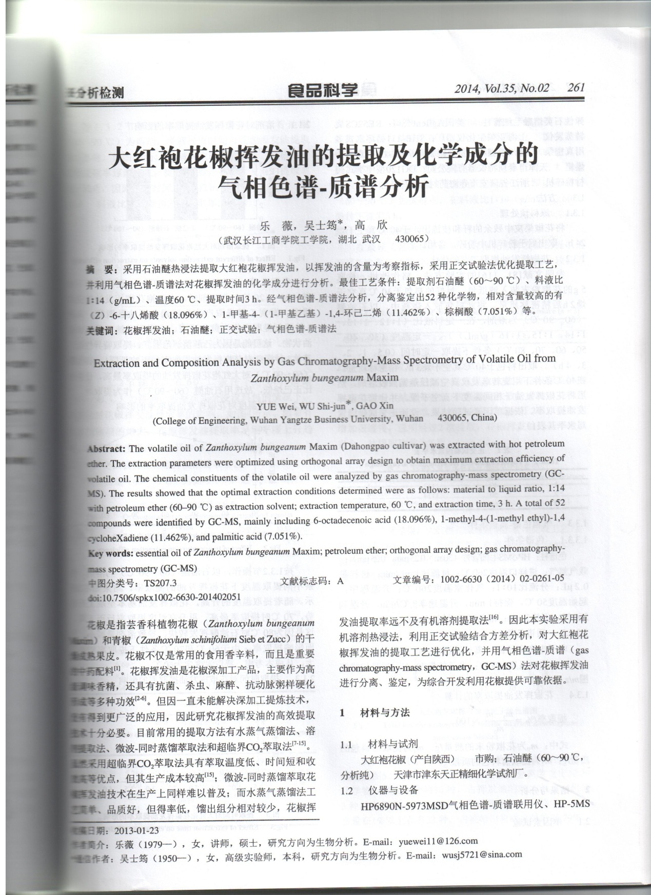 正交试验法提取花椒挥发油及GC-MS成分分析