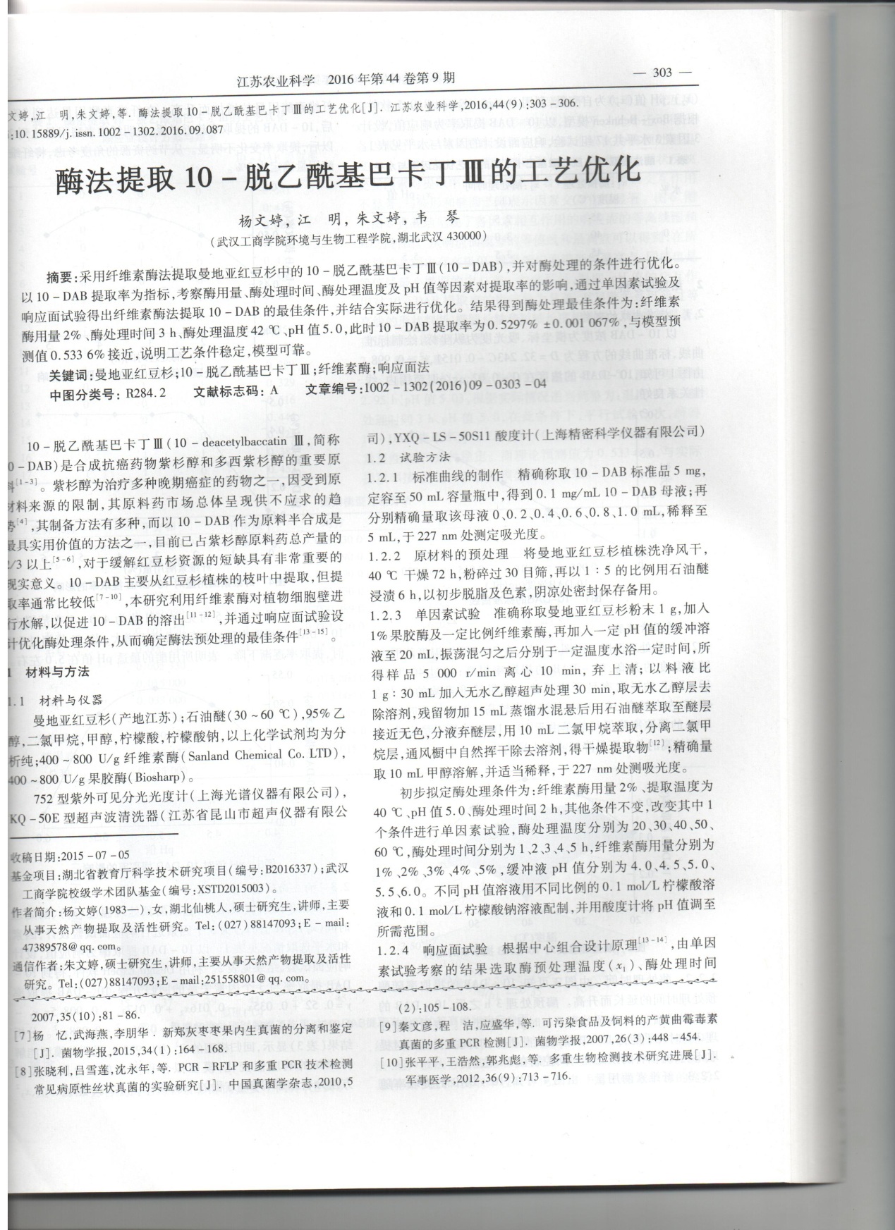 酶法提取10-脱乙酰基巴卡丁的工艺优化