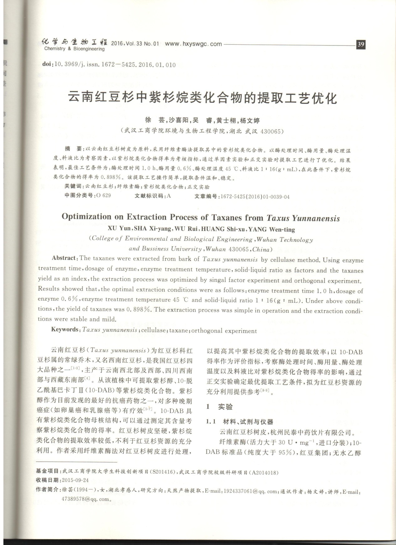 云南红豆杉中紫杉烷类化合物的提取工艺优化